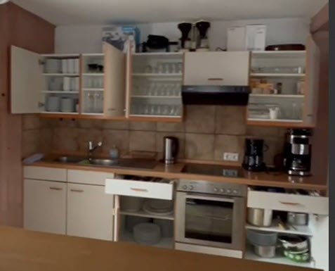 ausgestattete Küche. Ein Geschirrspüler ist nicht vorhanden.